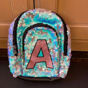 Small kids Mini backpack. Monogram “A”. Sequins flippy design. Multiple pockets