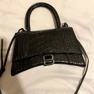 BALENCIAGA BLACK CROC HOURGLASS BAG SIZE SMALL AUTHENTIC