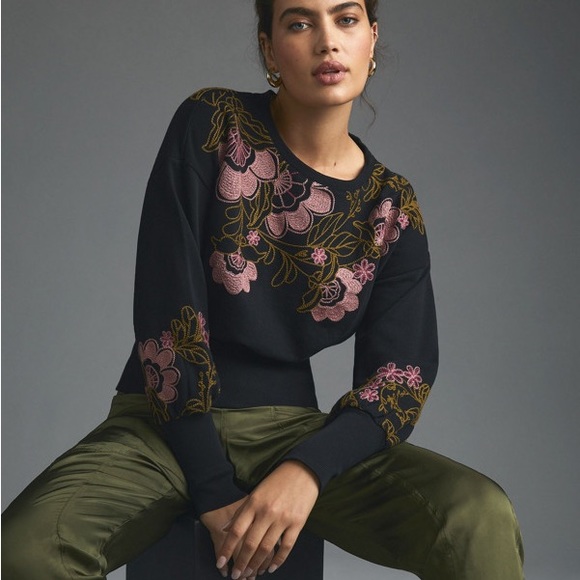 Anthropologie Tops - Anthropologie Top Embroidered Floral Sweatshirt Pullover NWT $128 Size Small