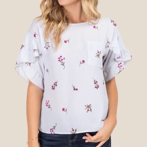 Tops - Sandy Floral Ruffle Layered Sleeve Pocket Blouse