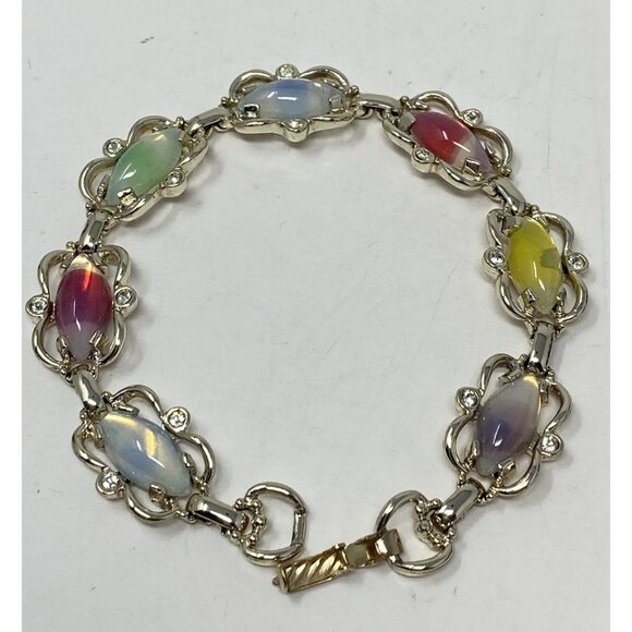 Beautiful vintage Sarah Coventry silver-tone bracelet with multicolored faux gemstones.