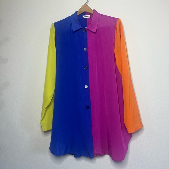 Obsessed with this shirt!!! I’ve never seen anything like it and I’m a HUGE fan of color blocking and bright colors so it’s perfect. The item was thoughtfully packaged and shipped very timely! Highly recommend this shop!