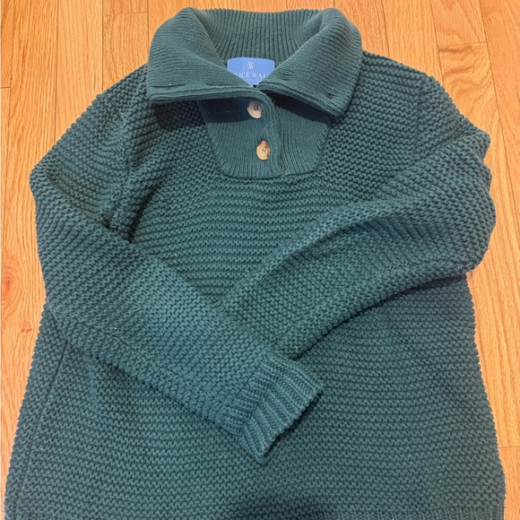 I can't wait to wear this cozy sweater! It feels so soft and warm, perfect for chilly days. The color is a lovely green!