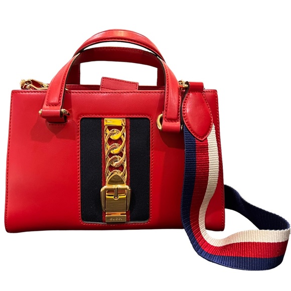 Gucci Handbags - Gucci Red Double Top Strap Two Way Sylvie Bag