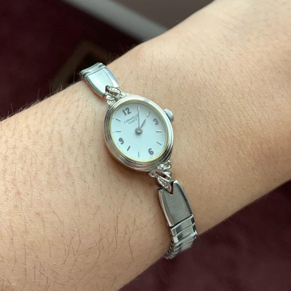 The watch is beautiful. I was pleasantly surprised to find that the band is the perfect size for me. I will be having a new battery put in next week. The tin it was shipped in was perfect.