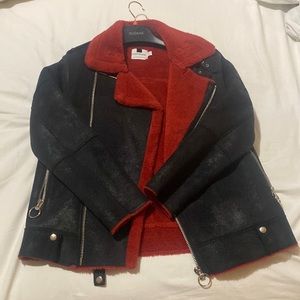 NWT TOPSHOP Yellow Fur Coat Biker Jackets sz 4