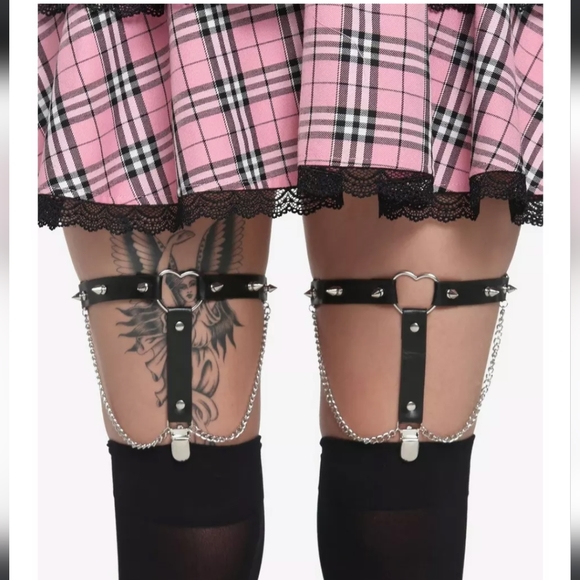 Hot Topic Accessories - NWT Hot Topic Black Heart Spike Chain Garter Belt Set