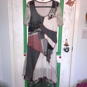 Funky artsy high-low strapless sundress