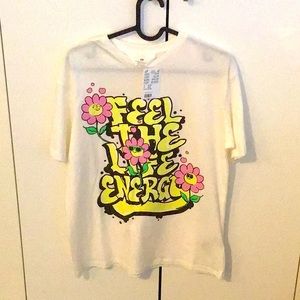 Checkered heart and flower new look black and white short-sleeve sweater.