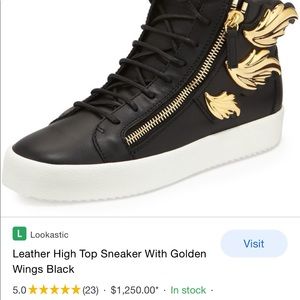 Giuseppe Zanotti Leather High Top Sneaker With Golden Wings Black