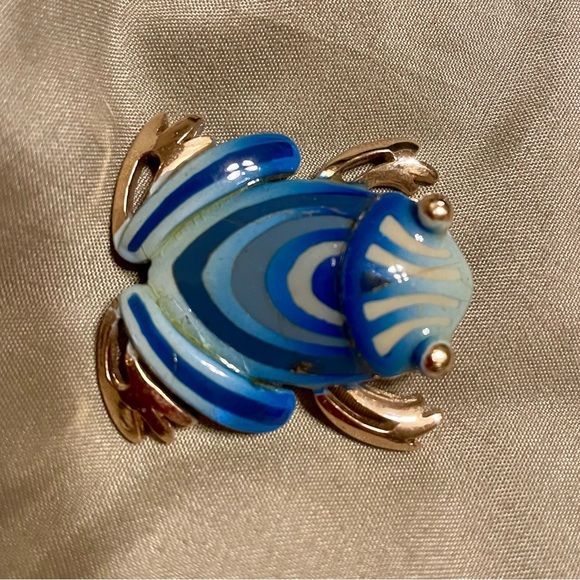 The lovely brooch exemplifies that beautiful things come in small packages. This charming frog is alive with extraordinary delight. Am in love with this pin. Thank you!