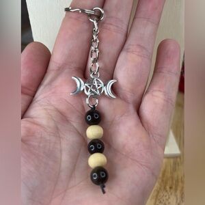 Handmade triple moon pentagram with gold sheen obsidian keychain.