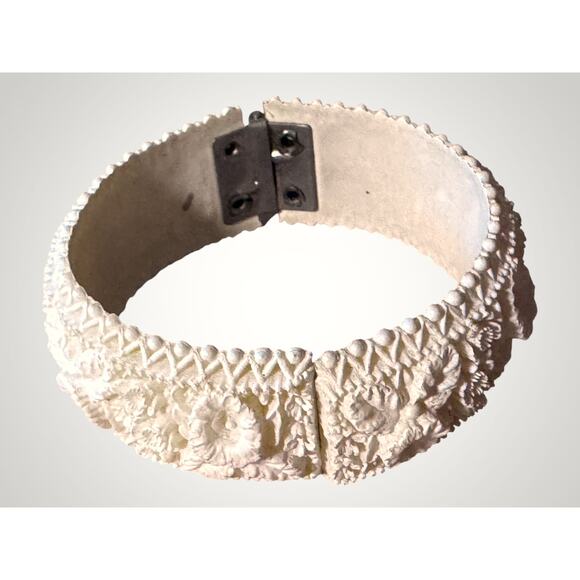 Lovely vintage celluloid faux ivory 1940s/1950s carved floral bangle bracelet.