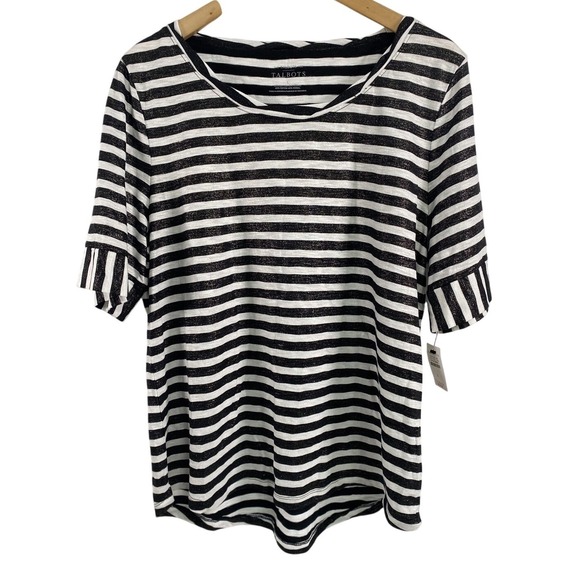Thanks for the quick shipping and the savings!! on the Talbots b/w striped, ruffle sleeve, metallic top. LOVE the sparkle, fabric and fit!
