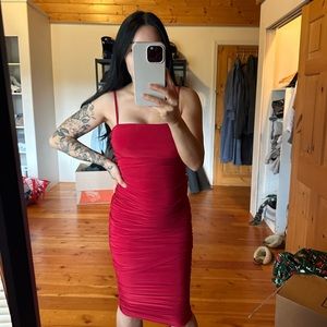Naked Wardrobe ruched red midi dress