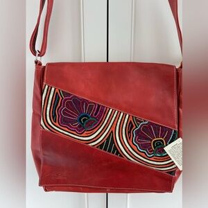 Women’s Mola Leather bag. Hand made by artisans. Gorgeous motive design. Unique!