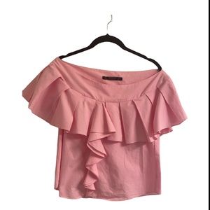 Zara basic pink off the shoulder ruffled blouse.