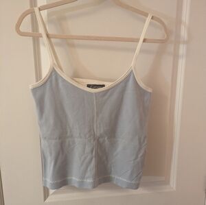 VINTAGE GARAGE Baby Blue Ribbed Crop Tank Top Lined 100% Cotton Size L