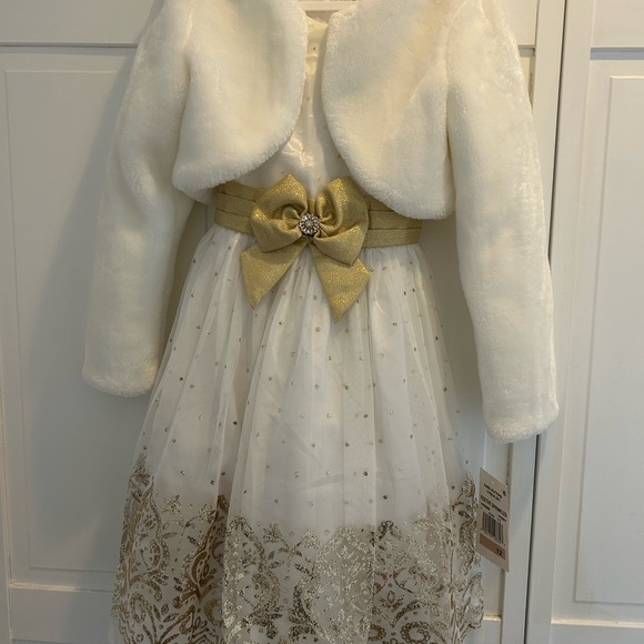 Rare Editions white and gold sparkle dress with fur bolero was delivered promptly and nicely packaged. The dress was as beautiful as described. It will be perfect for a special occasion for the wearer Thank you for sharing this special dress!!!!!