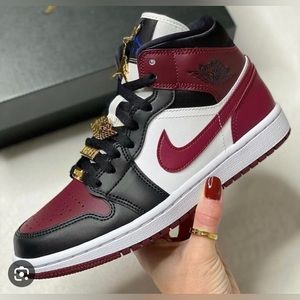 7Y / 8W AIR JORDAN MIDS BLACK/DARK BEETROOT-WHITE