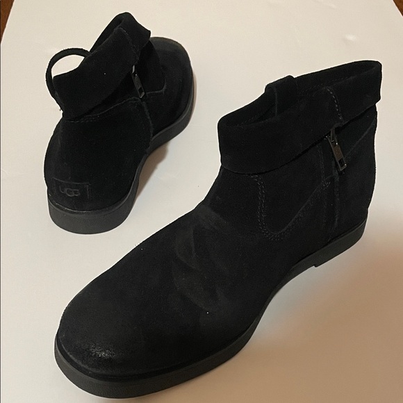 Great little boots! In perfect shape. I’ve seen a lot of reviews saying these are hard to get on. The insole is very thick and if you change it to a thinner one it’s a bit easier to get on. Wear thicker socks if to roomy. I also cut the flap on zipper side (in line w/ zipper) to the seam so I have a little more room to pull on. Then just flap back down. Perfecto!