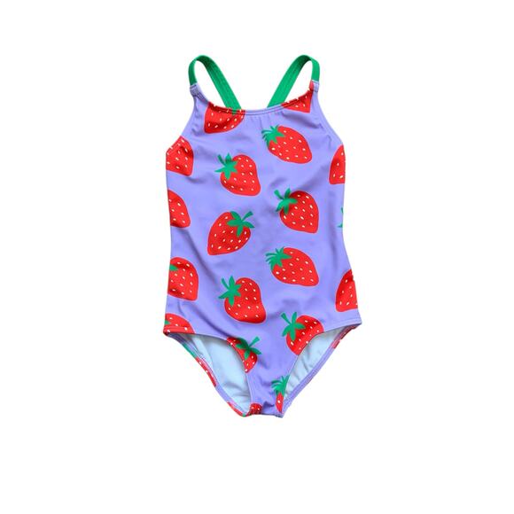 Good condition as expected and I am grateful to have found this, thank you! This is the next size up of my little one's favorite swimsuit that she is finally outgrowing so now we can continue to have a purple strawberry suit!