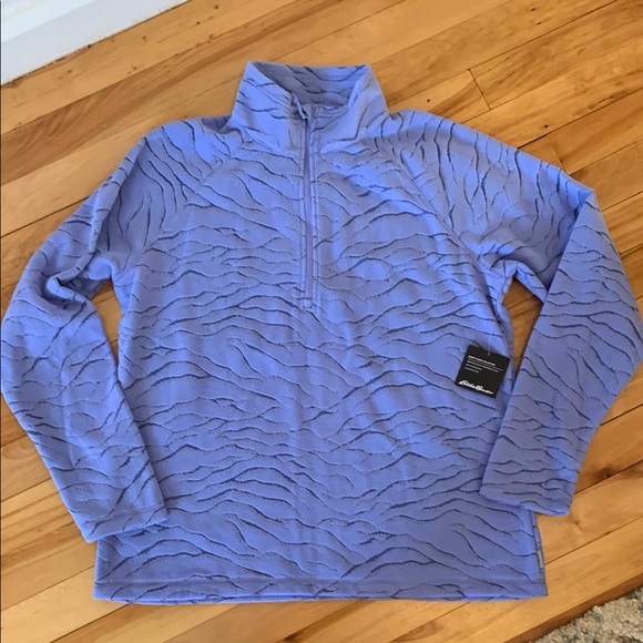 Eddie Bauer women's fleece pullover arrived early, packaged safely. Top is new as described, and the color is lovely. Great seller. Thank you.