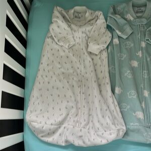Lot of 2 swaddle me zip up & Velcro Swaddles. 0-3 months & 3-6ish months