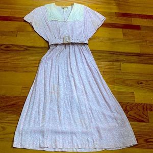 Memorable Brown Velvet Dress, Floral Accent Cotton, Empire Waist (maternity ok)