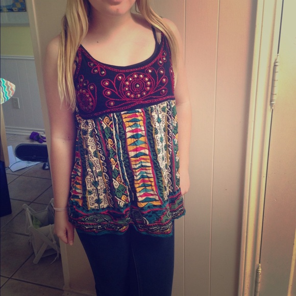 fairlygirly Dresses & Skirts - A Line Summer Print Dress with Mint Tassels M