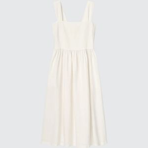 Uniqlo LINEN BLEND SLEEVELESS SHIRRING DRESS M off-white
