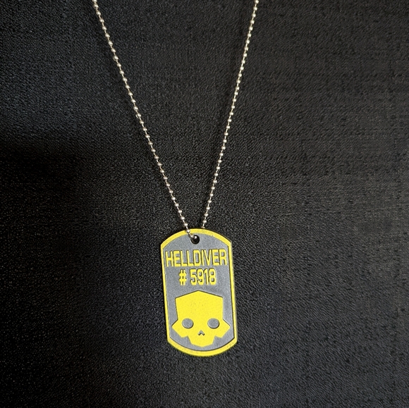 It was supposed to say Helldiver above the gamertag, it’s also pretty big, not really a comfortable/standard dog tag size. Pretty good quality none the less (did give 3 stars but moved it to 5 because you did in fact give the dimensions via pictures and that’s my fault for not expecting it)