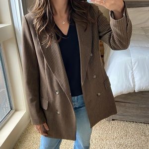 Aritzia Wilfred 2 Margaux Double Breasted Blazer Black Brown Plaid Houndstooth