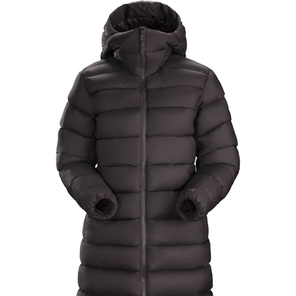 When you mentioned that the color has a purple tinge I had to make an offer. I bought a Goretex Arcteryx coat in 2019 and had to go with the ridiculously sale priced dark navy color instead of this color, “dimma.” This coat is roomier than my other one and I thought it was too big, but after shaking it to fluff up the down, it is perfect. Thank you for keeping it in such good shape!