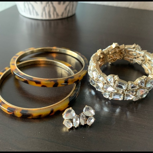 Beautiful tortoise shell bangles. The rhinestone bracelet and stud earrings are a class act. Thank YOU!