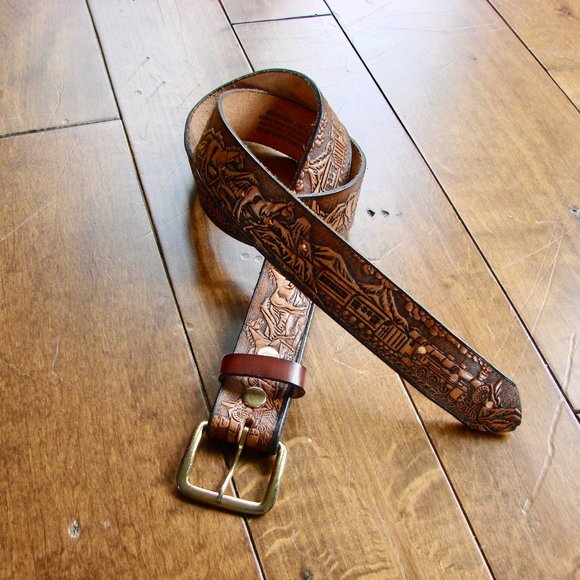 Leather Accessories - 100% Genuine Leather Handcrafted Western Cowboy Cowgirl Belt Horses Trains