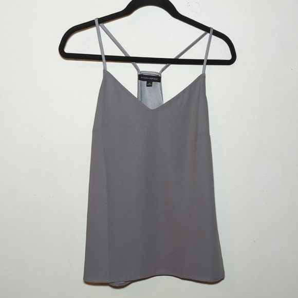 ⭐️⭐️⭐️⭐️⭐️Recipient loves it! This Banana Republic gray V-neck cami is perfect! The color goes with everything and the material feels soft and silky. It fits really nicely and looks great alone or under a jacket. The straps in the back add a cute touch. Recipient loves it and says it's one of their favorites! Thank you!