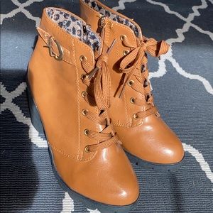 Brown Faux Leather Lace Up Heel Boots