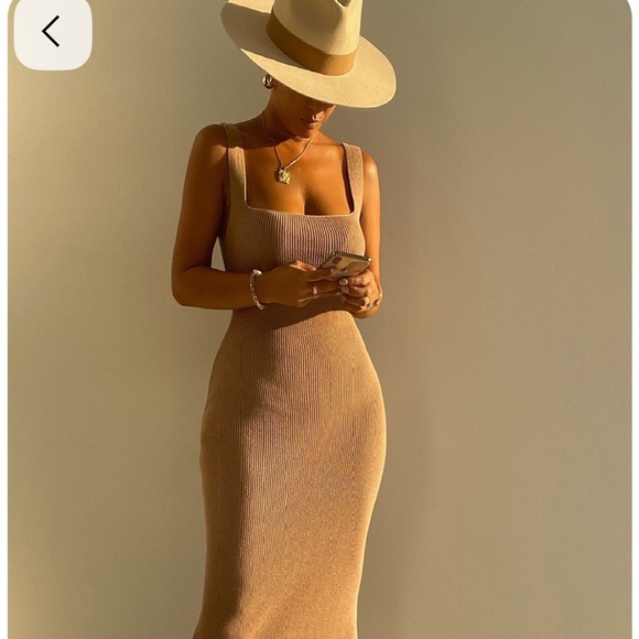 This dress is absolutely stunning. The fit is flawless and hugs the body just right without feeling too tight. The material is soft, stretchy, and high quality, and the color is the perfect warm neutral. It looks exactly like the photos and gives such an effortless, elevated vibe. I love everything about it!