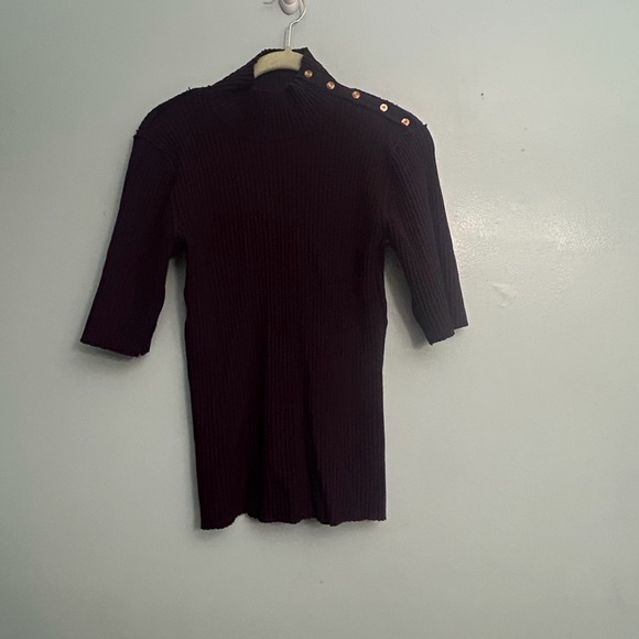 Beautiful eggplant color. Pictures did not do this gorgeous sweater justice. Amazing experience poshing all around!