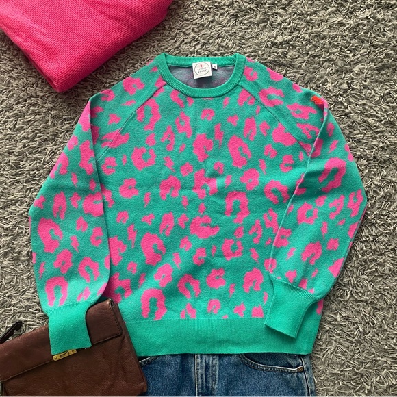 Scamp&Dude Sweaters - Scamp & Dude Green with Pink Leopard Knitted Jumper
