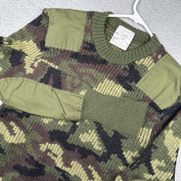 As described, fits great, and the hole will be an easy mend at a tailor :) The camo color in this style sweater is not easy to find. Thank you