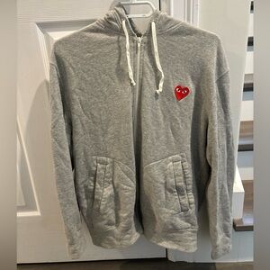 COMME DES GARCONS CDG PLAY FULL ZIP RED HEART HOODIE LARGE