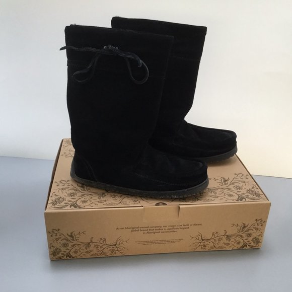 These shoes came pretty fast and arrived in great condition. There is some water/salt marks near the sole on the boot but that’s normals since it says it worn a few times. I was scared they weren’t going to fit since the bottom moccasins part seemed low in height and anyone with wide/fat feet but surprisingly they slipped on with a average push and once on felt like they conformed to my feet. I do have size 18 once lower calves and this just fit right with some slouching which is how you’re supposed to wear it anyways. Overall I love how these shoes conform to your feet and feel like your legs/feet are in a warm heated blanket that’s set at the perfect temperature. Thank you so much for an efficient delivery and great product. I will definitely be a repeated customer. ✨😊