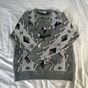 Vintage cooper knit sweater, grey white green, fall vibes