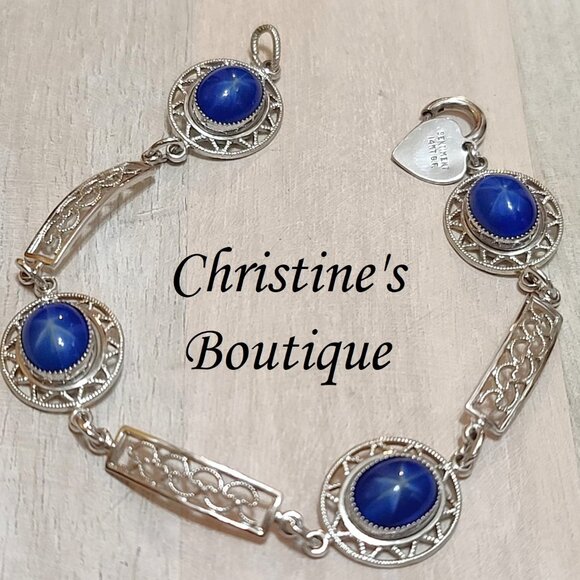 This white gold filled filigree bracelet with faux blue cabochons is exquisite. This dainty little thing will take any outfit from classy to exceptional. Love it.
