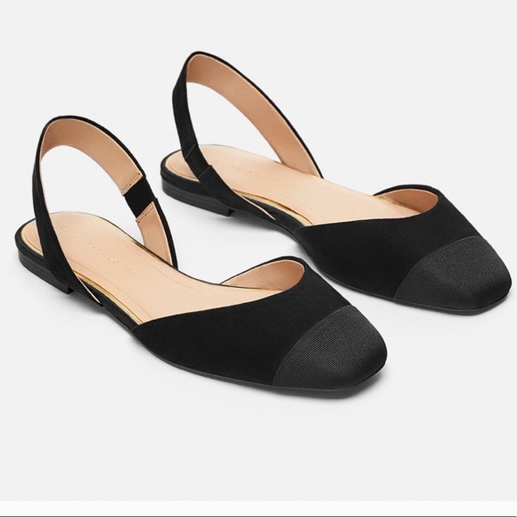 Zara Shoes - NEW Zara Black Square Toe Slingback Flats