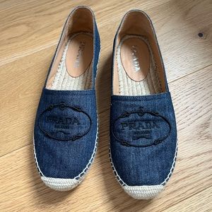 Authentic PRADA denim logo espadrilles; women’s size 9