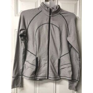 RARE Lululemon Define Jacket w/ RUFFLE size 12 Gray Black Thumb Holes