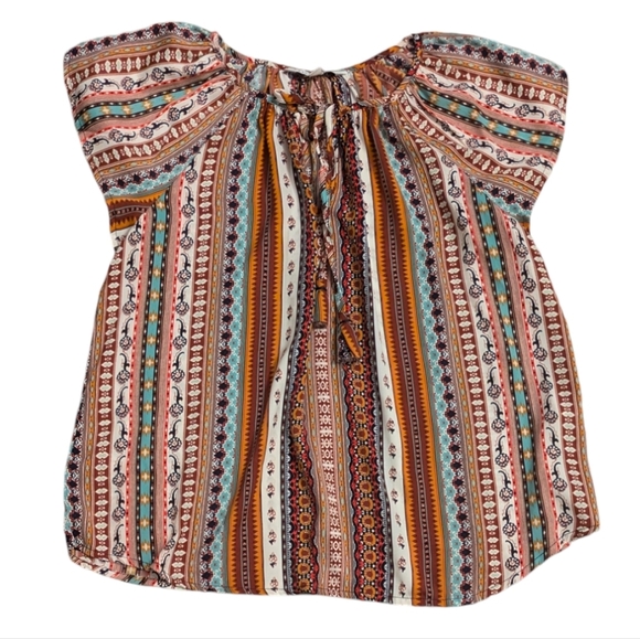 This dress has beautiful shades of blues and greens. It is a stretch, comfortable fabric. I was given a very good price on it, and it arrived quickly. Good experience!